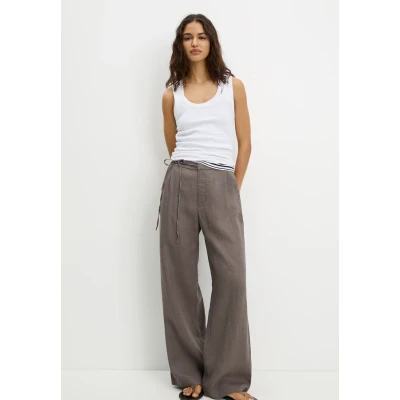 WIDE-LEG WITH BUTTONS - Trousers - mottled light brown
